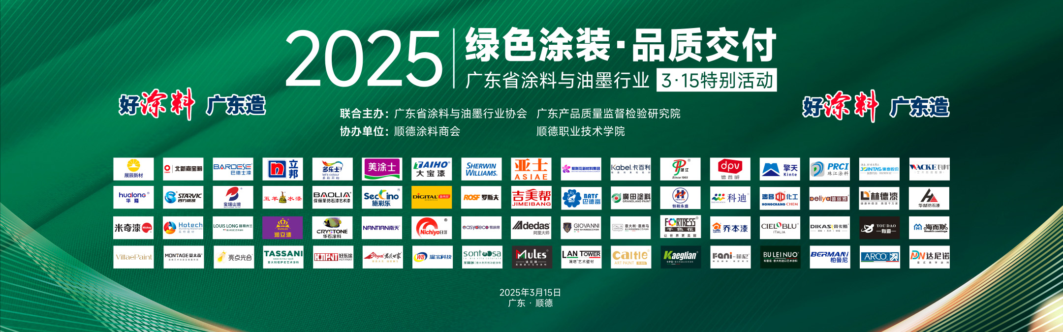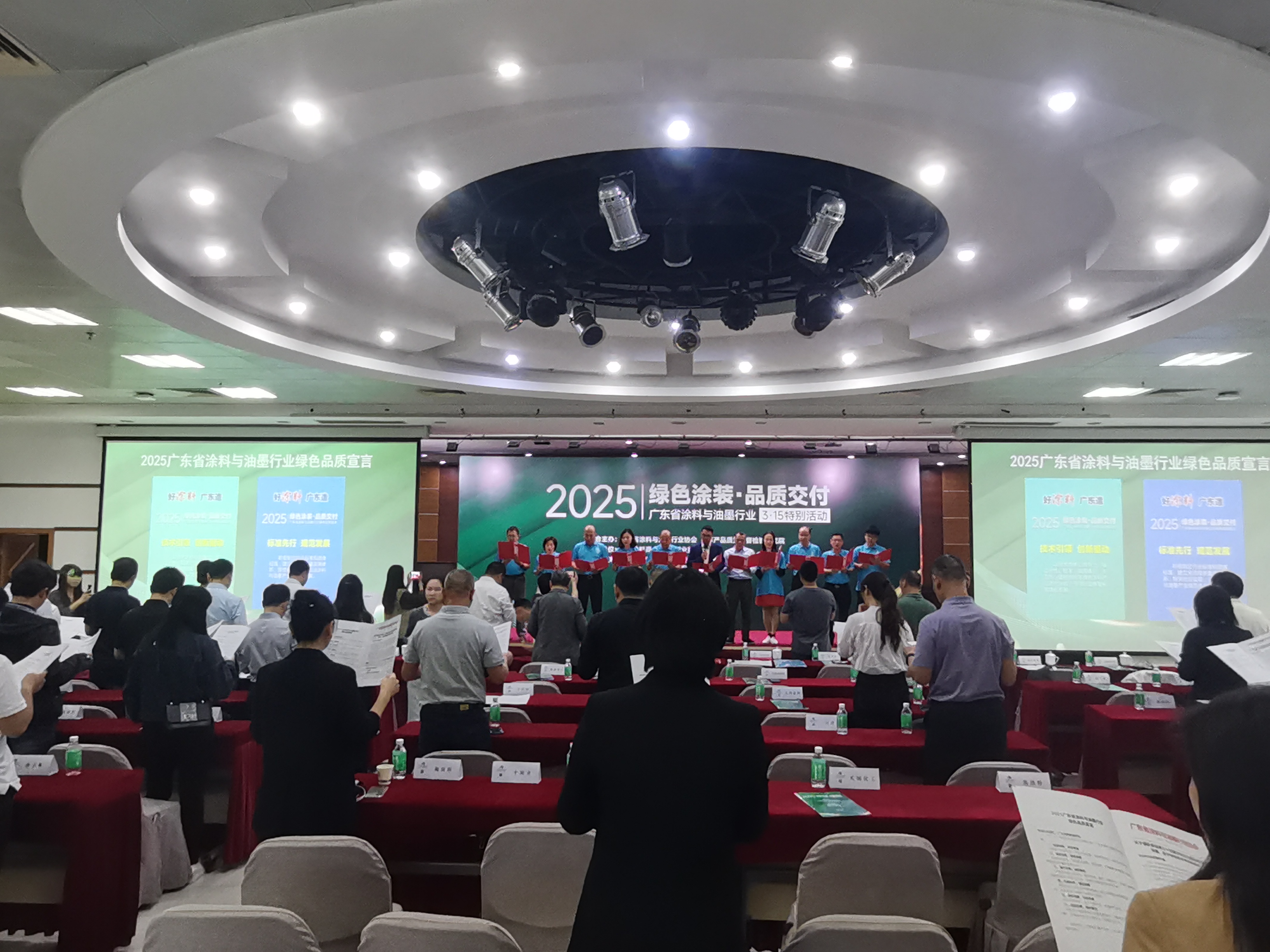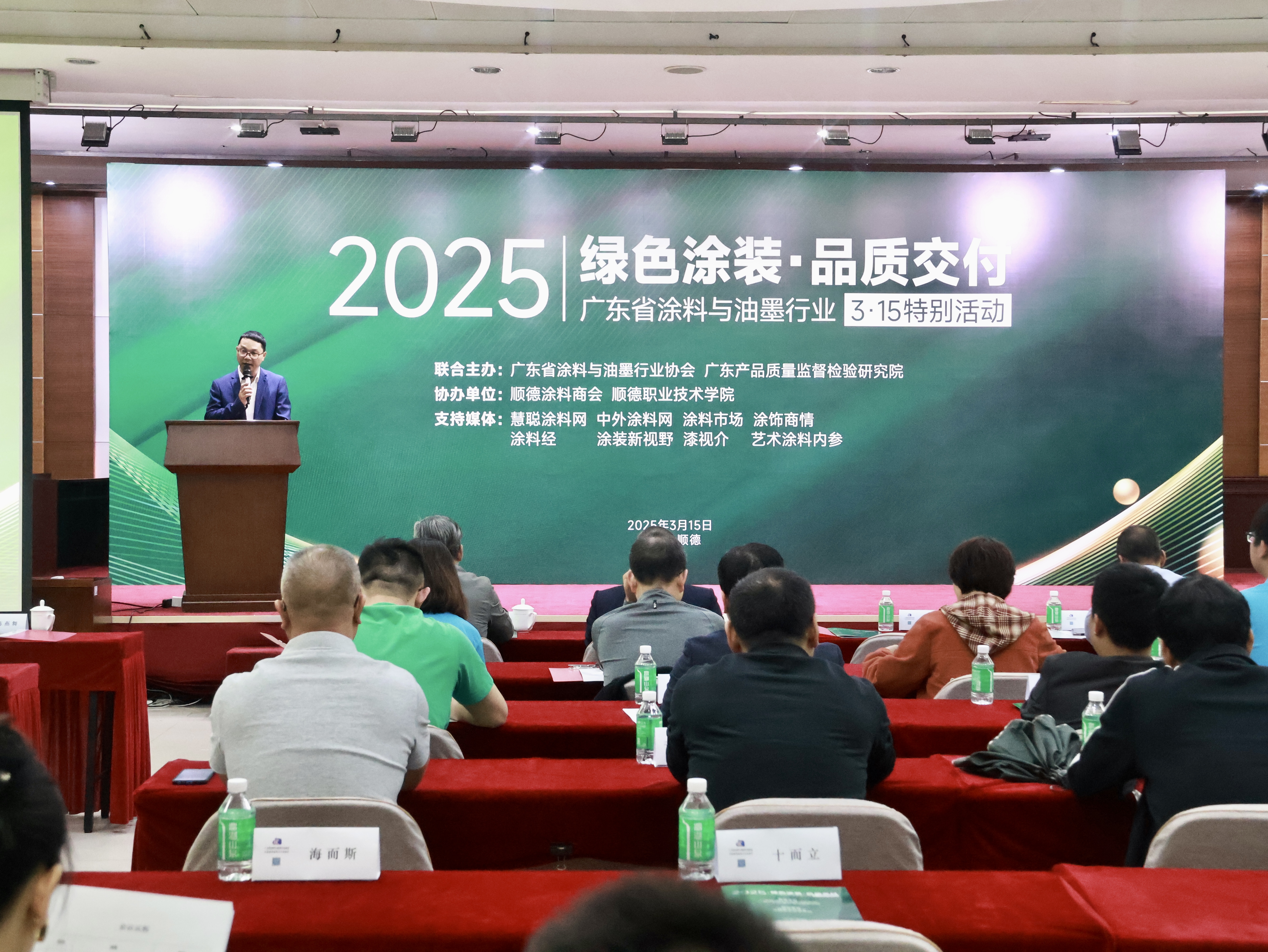 在國務院政府工作報告提到“發揮好行業協會商會行業自律作用”的背景下,廣東省涂料與油墨行業協會作為5A級社會組織積極響應政策號召,2025年3月15日,聯合廣東產品質量監督檢驗研究院(順德基地)于順德隆重舉辦“綠色涂裝·品質交付”3·15特別活動。活動匯聚企業代表、檢測機構、經銷商、消費者代表,蒙太奇作為廣東藝術涂料標桿企業,受邀參加此次行業活動。