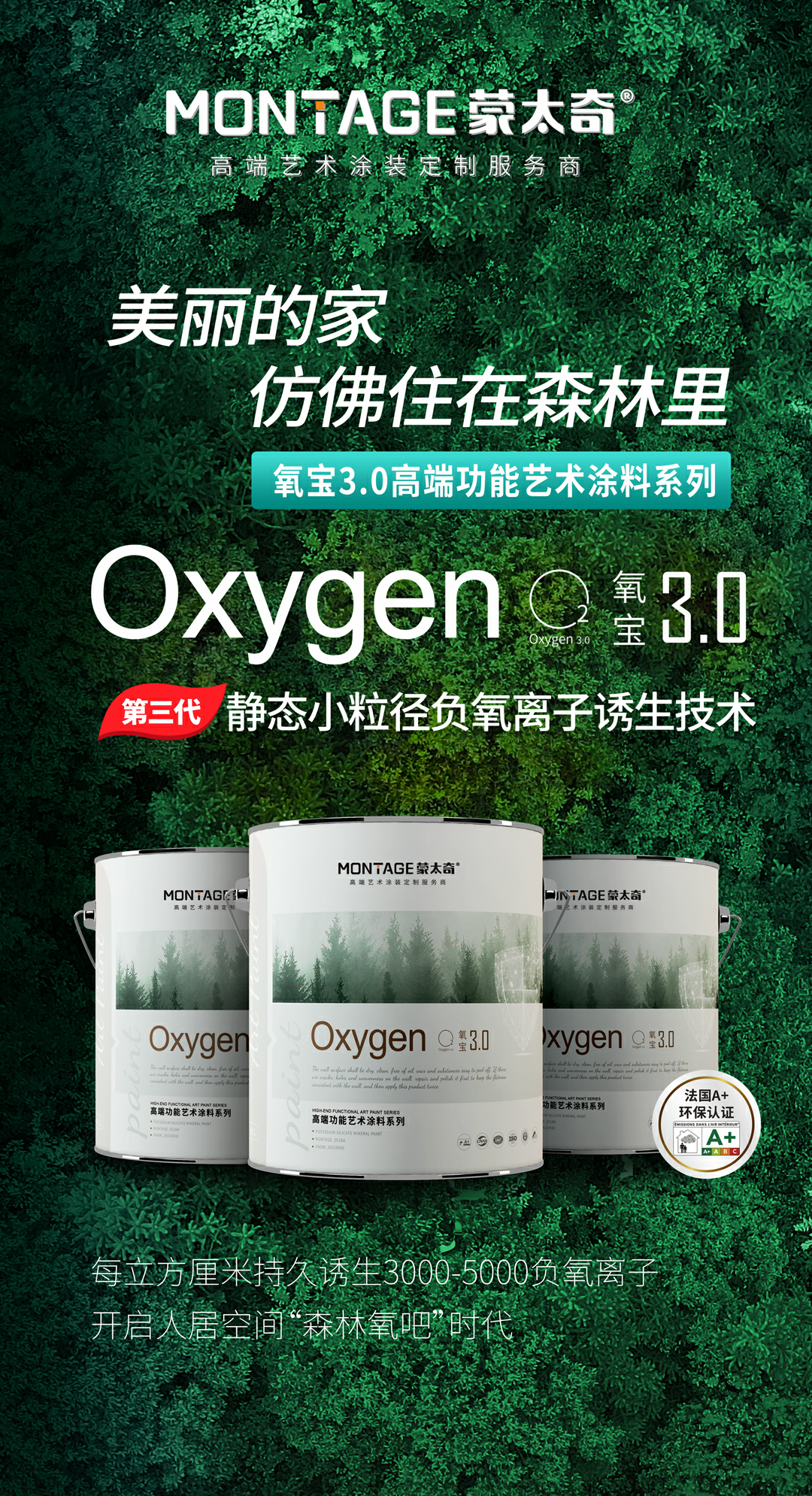 蒙太奇氧寶3.0系列搭載“第三代靜態(tài)負(fù)氧離子誘生技術(shù)”,能持久釋放負(fù)氧離子,其負(fù)氧離子含量與誘生量均通過國家檢測中心認(rèn)證。具有優(yōu)異的殺菌除味效果,沉降PM2.5、改善亞健康的功能,相當(dāng)于將森林氧吧搬入家中。