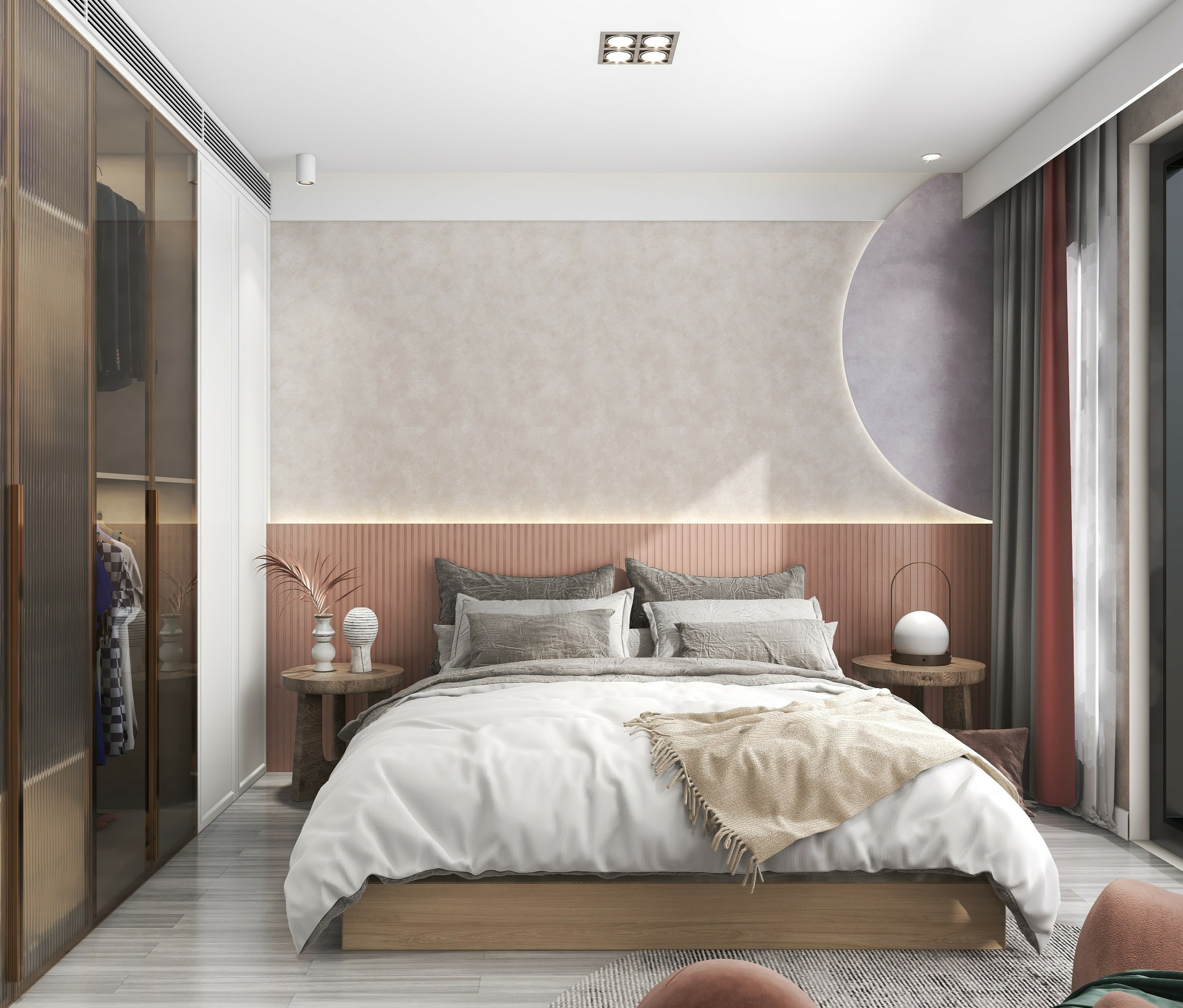 觸感柔和,為空間鋪展溫柔基調(diào),絨面紋路錯(cuò)落有致,在光影下自然起伏,兼具視覺層次與觸覺溫度。
